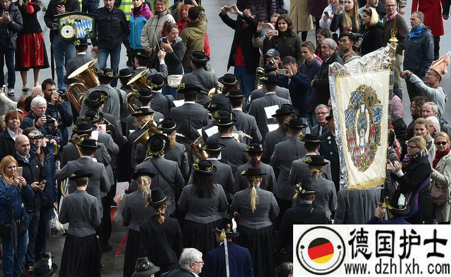 德国慕尼黑,慕尼黑啤酒节的最后一天,民众身穿传统服装参加庆祝活动