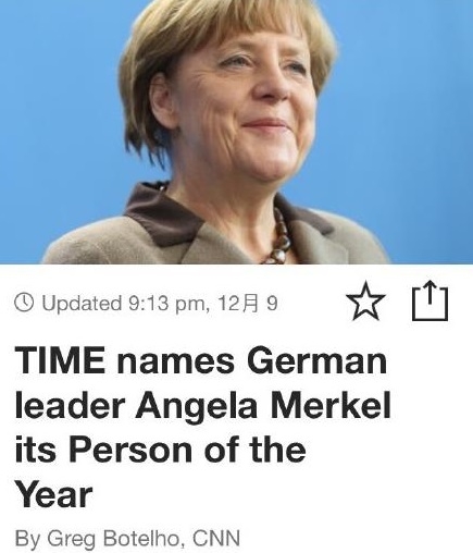 德国总理默克尔当选《时代》周刊2015年度风云人物