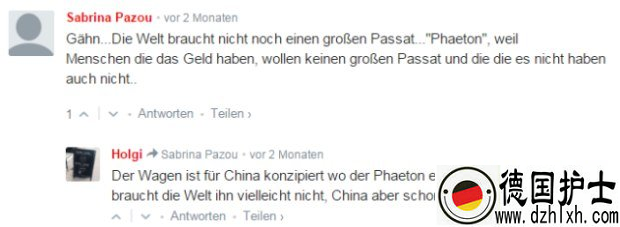 可能有人要说了,小鹿你又不是德国人,你咋能说务实的德国人就只喜欢BBA的C级车,不喜欢我们中国产的大众辉昂呢!如果小鹿说的这些都不能代表德国消费者的心声,那我们不妨来听听,德国网友是怎么评价这个即将登陆德国的“远房亲戚”的吧!