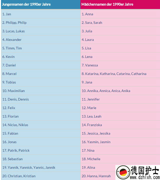 德国90后的最热德语名 德语专业 编辑:德语入门学习 2018/09/02 来源:www.dzhlxh.com 次浏览 德国90后的最热德语名(左边为男生名,右边为女生名):德语的爱你,欧标德语,德语难,初级德语,六的德语,高级德语,