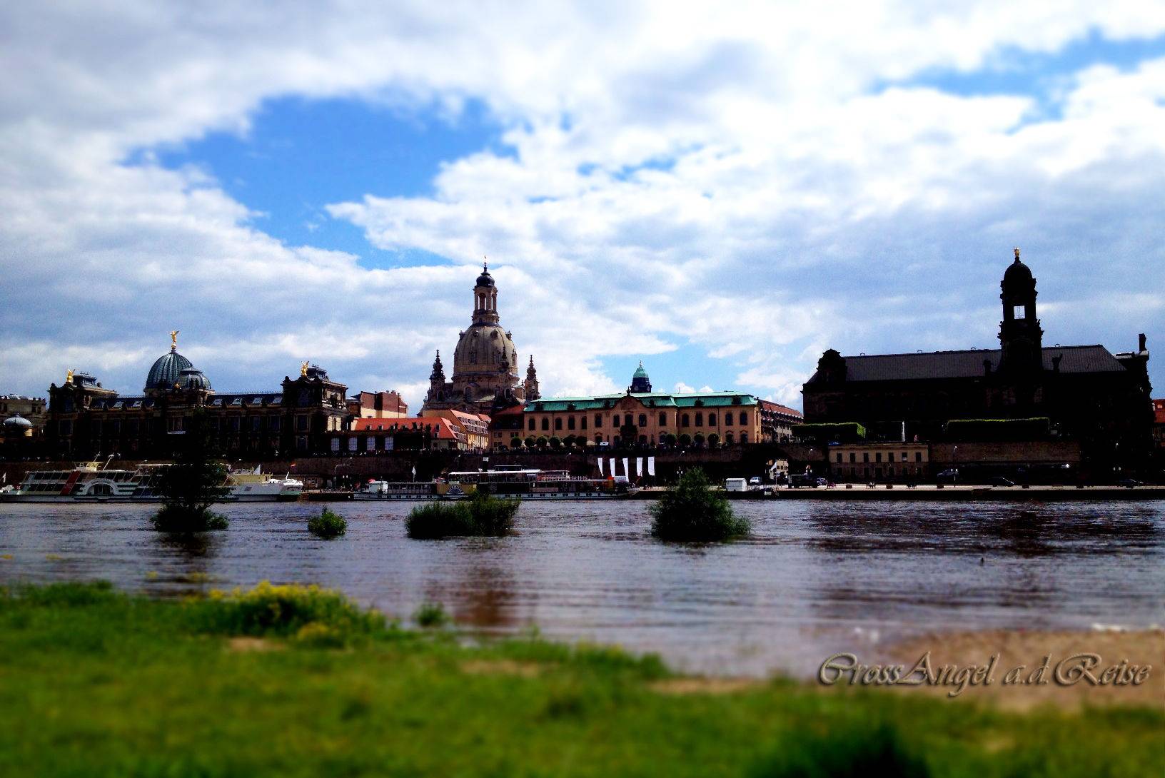 对教堂内部陈设兴趣缺缺的我们决定过河到新城区参观金色骑士~ 没过多久再回望易北河对岸,圣母教堂正上方的云层渐渐散开,阳光环抱着她,这画面美丽而又神圣~