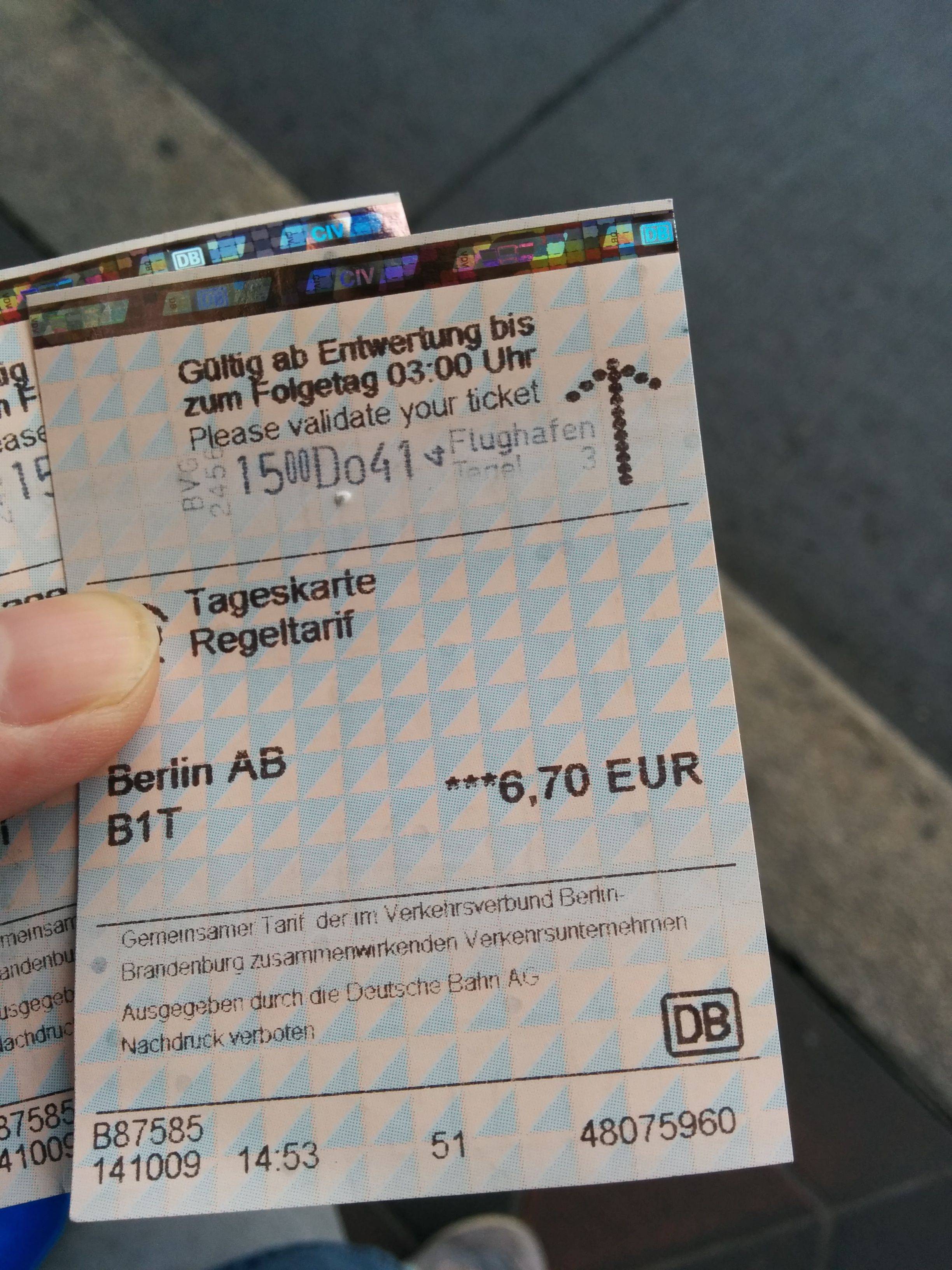 航班准点到达柏林Tegal机场,机场很小很旧,出机场直升电梯居然还兼职运货。出了机场第一件事情就是买柏林天票,柏林大部分自动售票机只收10€以下纸币,由于只在柏林市区转悠,只购买了AB区天票,有关柏林天票的范围在穷游锦囊柏林讲述得很清楚,这里不作过多描述,记得在黄色打票机打票,否则算逃票 耐心候车,现在柏林公交准时准点情况较时刻表有着2-5分钟的误差,109路开往柏林西部动物园 等了半天来了个教练车,柏林公交车基本上都是贴着马路牙子开,再快也能很准确的贴着,佩服 |