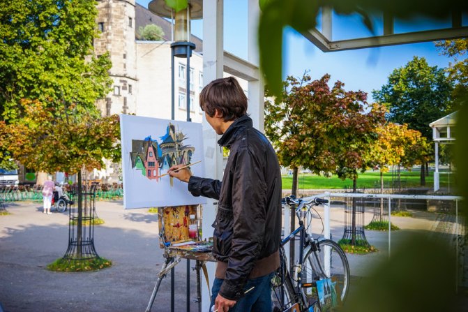 偶遇一个少年在速写。