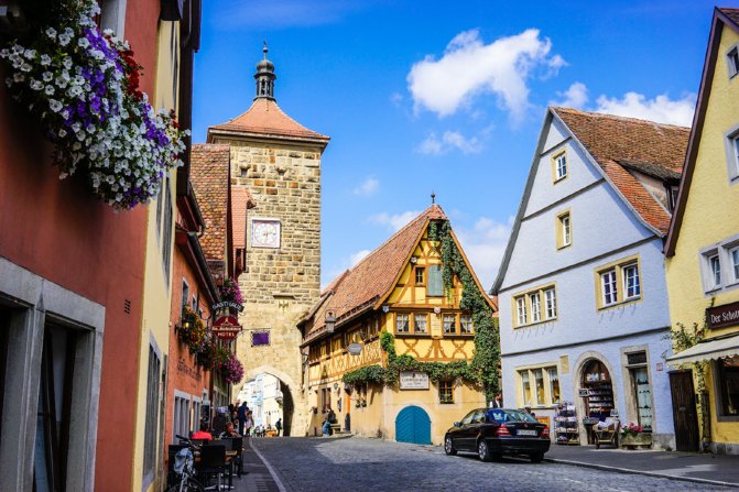 罗滕堡城中的标志性景观之一,在老城的南端,石板路在这里一分为二,呈“Y”字形,且顺着地势有不同的坡度。小路两边是美丽的传统木框架房子,还有一个小小的喷泉。这里是罗滕堡特色街景的缩影。