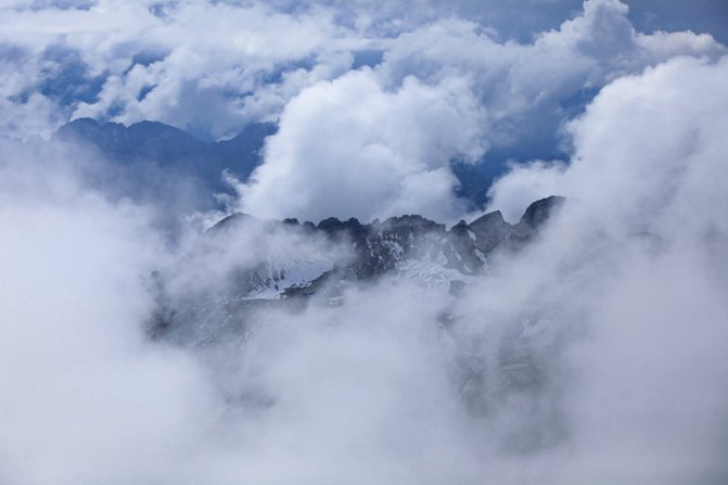 站在海拔2963米的楚格峰,两座雪峰昂然矗立,环顾德、奥、意、瑞四国壮丽山川,仿佛置身于瑞士。