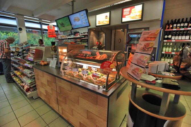 在德国,基本上加油站都有超市,你可以买到早,中,晚三餐,各种零食和水,就像我们这里的便利店,24小时营业,洗手间一般都需要另外收费。